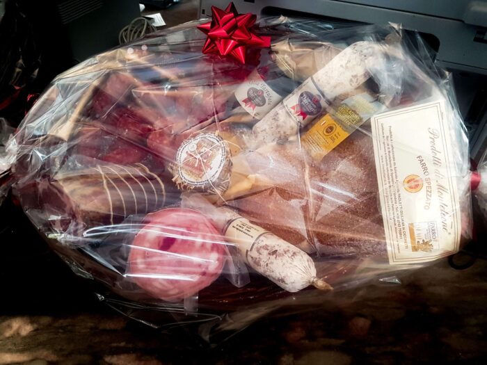 La confezione del cesto di Natale da Norcia sara’ confezionato su scatole Natalizia e contiene:
