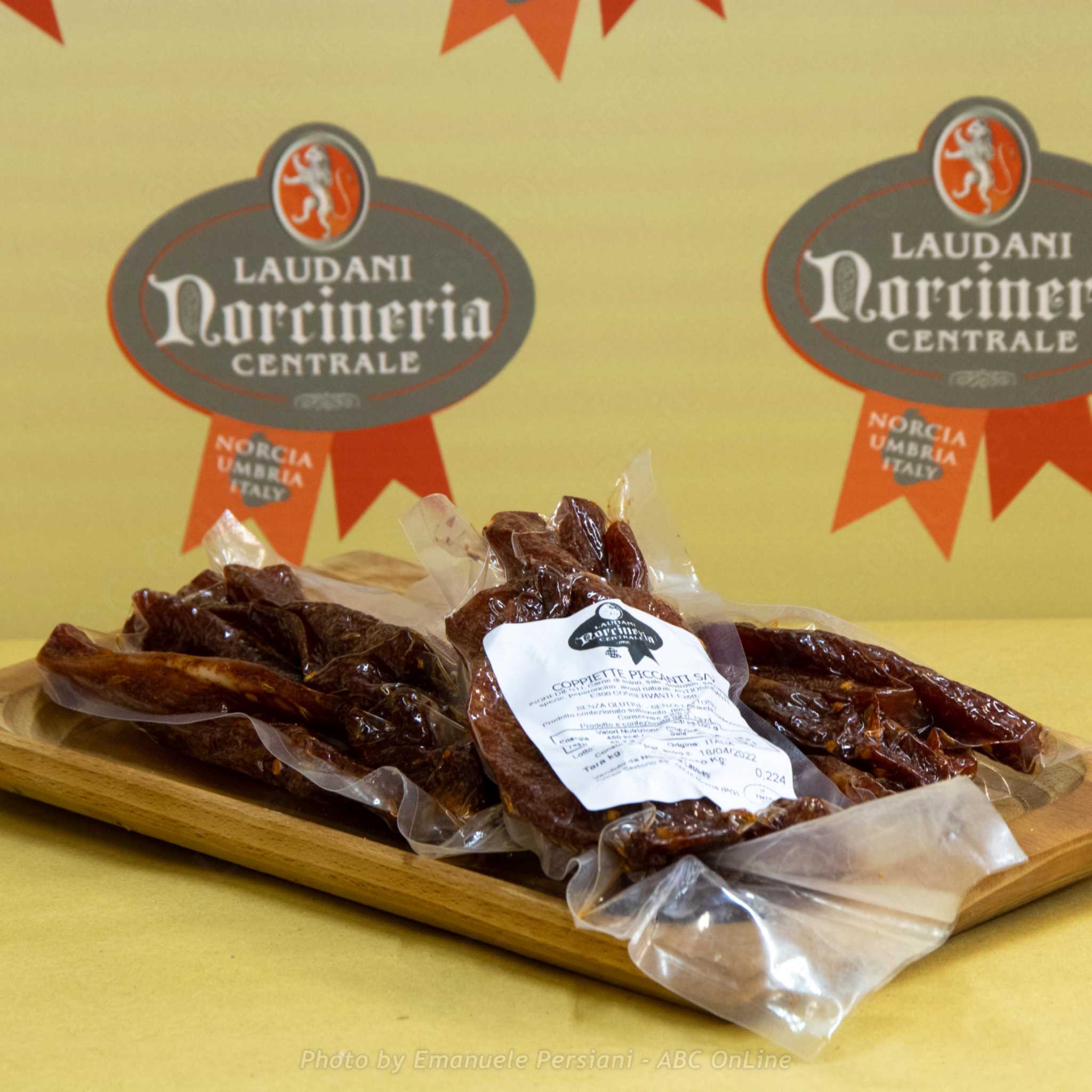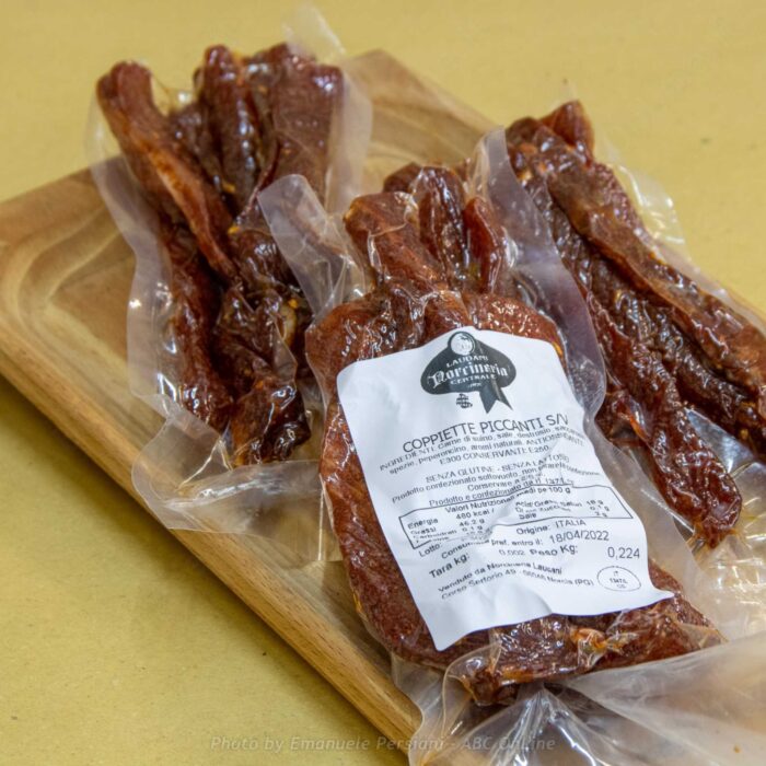 Le coppiette prodotte a Norcia sono commercialmente conosciute anche come COPPIETTE ROMANE, un prodotto che inizialmente veniva realizzato con la carne di cavallo.