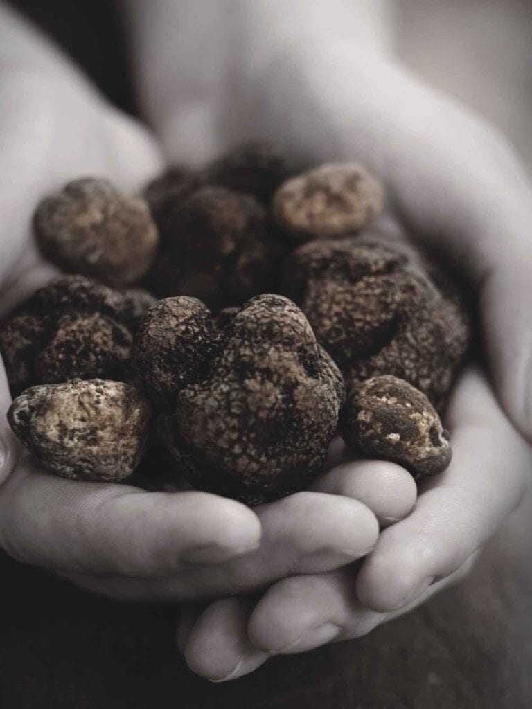 il tartufo è un prodotto che viene estratto dal terreno, cresce in maniera spontanea in molti dei terreni di Norcia e della valnerina in generale. Per certi aspetti assomiglia ad un fungo, ma fai attenzione: è un fungo che non cresce fuori dal terreno, rimane all’interno del terreno e lì resta fino ad arrivare a maturazione, quando, nel massimo della sua crescita ha un profumo MOLTO GRADEVOLE!
